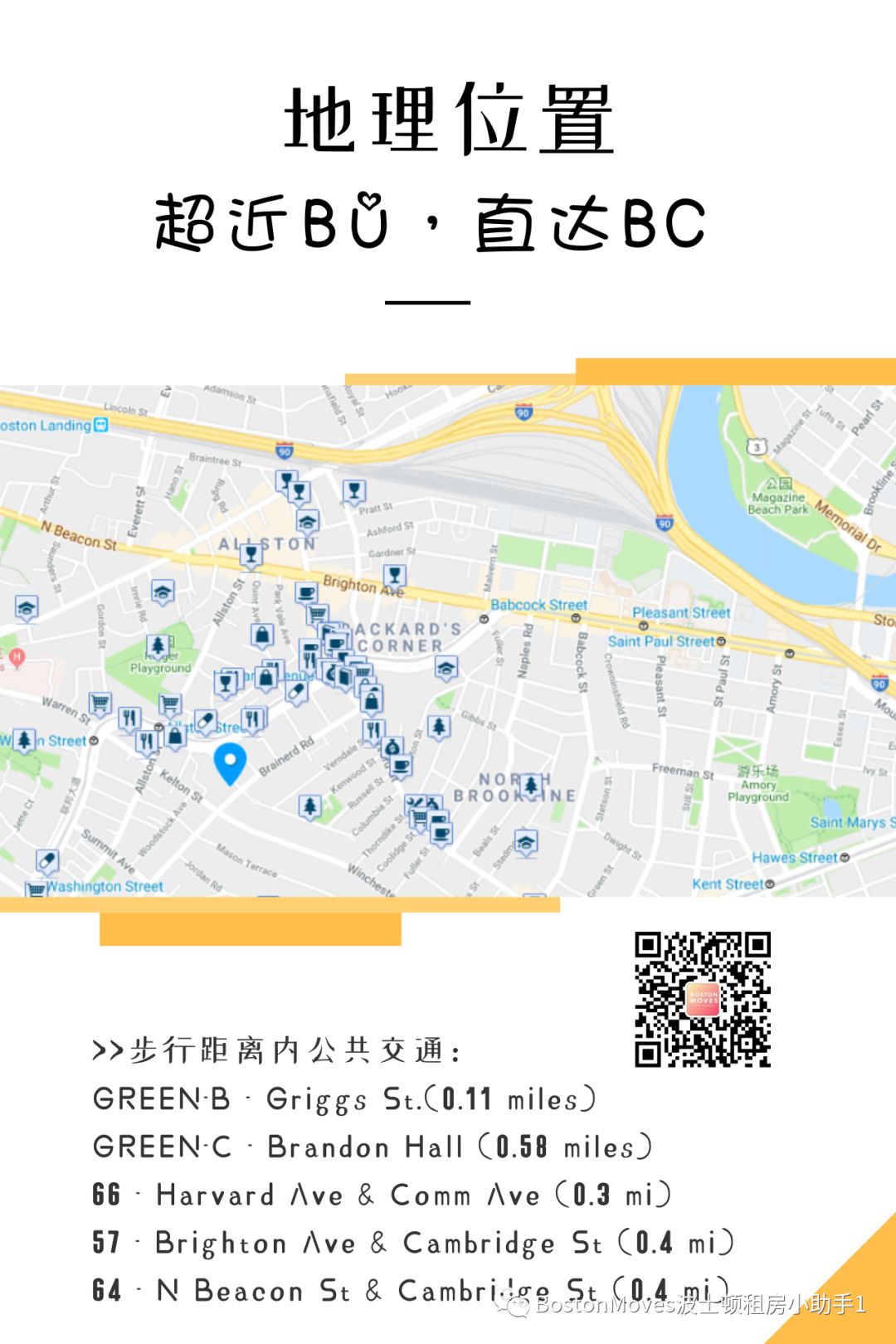 +++++++地理位置+++++++ >>地铁15分钟直达BU Boston University波士顿大学 >>开车9分钟直达BC Boston College波士顿学院 >>附近有美食一条街Harvard Ave >>附近有药房、邮局、银行等,生活便利